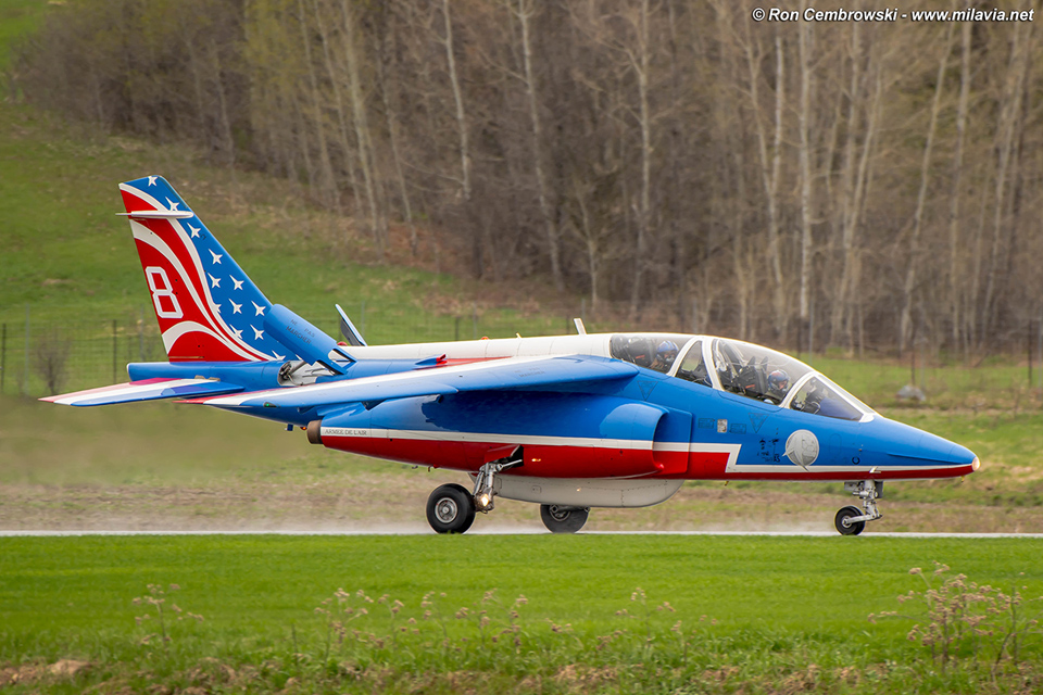 Patrouille de France Alpha Jet E F-TEMO #8 arrival. Photo copyright Ron Cembrowski