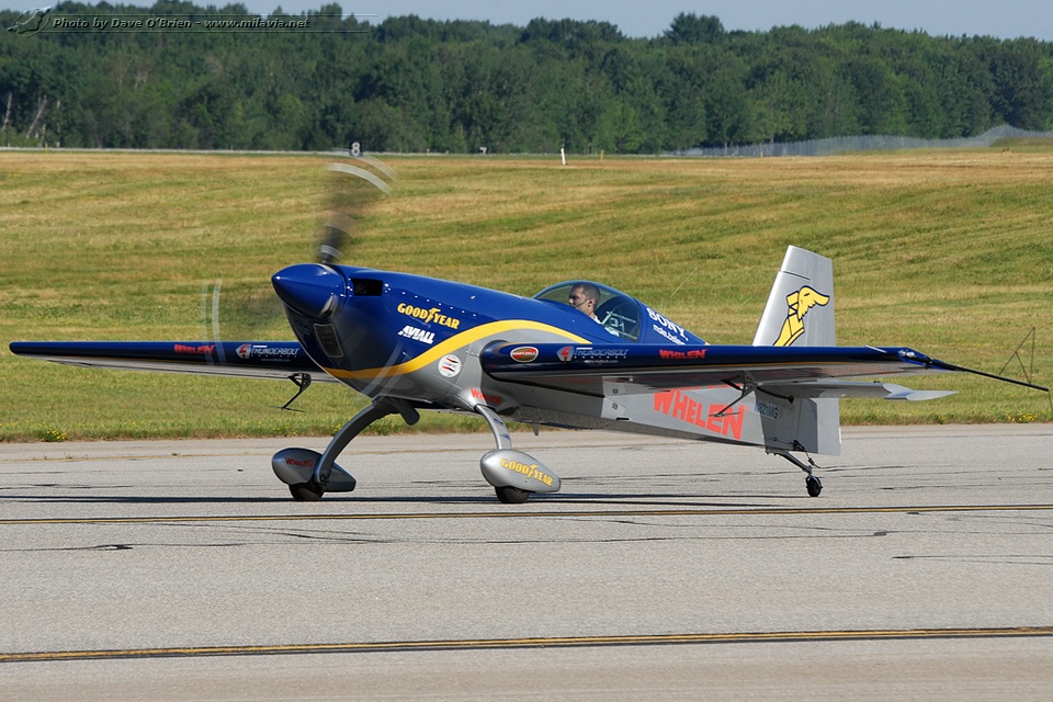 Michael Goulian arriving in his Extra 330SC . Photo copyright Dave O'Brien