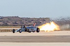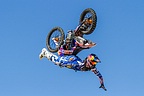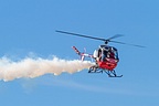Other morning performances consisted of the well-known John Collver and his AT-6 “War Dog”, Steve Stavrakakis flying his Romanian IAR-823 as a tribute to veterans and Bret Willat with “Sailplane Magic”, a well-choreographed glider aerobatic routine with audio accompaniment. Otto the Helicopter would then take the stage. Roger Buis, flying a Schweizer 300C outfitted with eyes, a nose and a mouth entertained the early morning crowd with a comical program displaying skillful maneuvering such as flying backward at over 90 mph (144 km/h). Followed by a tribute to legendary aviator Bob Hoover with a T-39 Sabreliner owned and operated by Randy Fry, known for Fry’s Electronics, the west coast consumer electronics retail chain. Rounding out the morning’s performances would be the Red Bull’s Chuck “Malibu” Aaron in his aerobatic MBB BO-105 and the Red Bull freestyle motocross demo.