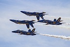 In their 33rd appearance of the 2014 calendar year, the Blue Angels returned to Miramar for three days of intense, high energy flying displays. As my 5th, 6th and 7th Blues performances this year, the Blues were plagued by problems with different aircraft making for uncharacteristic lulls in the flawless performances that I had become accustomed to. Sunday’s performance was so badly faulted that the Blue Angels diamond formation flew with only three planes as opposed to four. This unfortunate development would have fashioned less disappointment if not for the previous days show commencing without the Blue Angel #5 opposing solo aircraft. As many air show photographers would agree, the holy grail of photographing a Blue Angels’ performance are the opposing solo passes. Despite problems, seeing the Blues fly is always a treat. With all the pomp and circumstance of every performance previous, the Blue Angels were given lemons and made lemonade.
