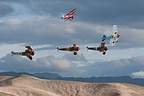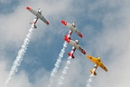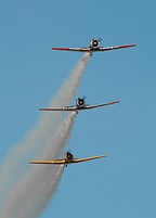 New Zealand is blessed to have as regular performers on its the airshow circuit two of the world's few civilian formation aerobatics teams. The Roaring Forties fly five of the venerable T-6 Harvards, which are operated by the very successful New Zealand Warbirds syndicate based in Ardmore. Led this year by Frank Parker, the Roaring Forties' display was an excellent exercise in precision formation aerobatics, accompanied by the glorious sound of five Harvards. Although not considered a true 'Warbird' by purists, the distinction is blurred with the Yakovlev Yak-52 trainers from the Soviet Bloc. The same attributes that made these aircraft superb trainers for the Soviet Union, namely its manoeuvrability and robustness, make the Yak-52 ideal as a formation aerobatic aircraft. The team is drawn from across the country, with its pilots putting in many hours of practise and rehearsal in their own time. This practise is evident throughout their very entertaining routine, especially at the end where the team comes together from all over the sky into a head-on formation before executing a perfectly timed 'break' out from the crowd line.