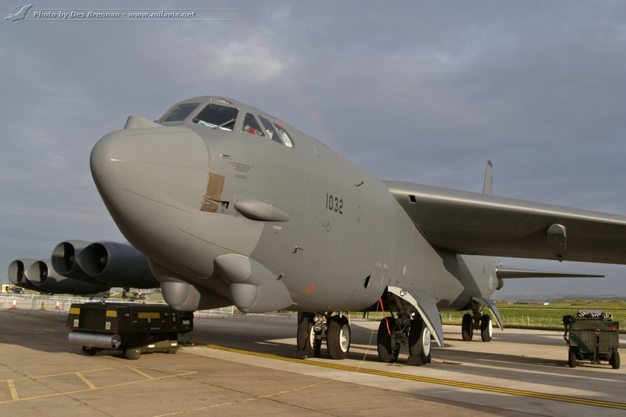 Boeing B-52H Stratofortress, BD/61-0032, from the 93rd. Bomb Squadron of USAF Reserve Command in Friday evening sunshine.