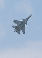 On Saturday afternoon a USAF B-52H from Guam performed a fly-by as part of a non-stop flight. The US Pacific Air Forces’ F-16 Demonstration Team performed the same display daily, flown by pilot Major Smeeding, with flares were being released at each twist and turn. The aircrew were all relaxed and talkative, despite the oppressive heat.
