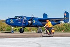 “Devil Dog” presents a US Marine Corps B-25 version designated PBJ-1. PB stands for Patrol Bomber and the J is the designation for North American Aviation, as the manufacturer. The color scheme of blue is most striking on a medium bomber of this size, a real eye catcher!