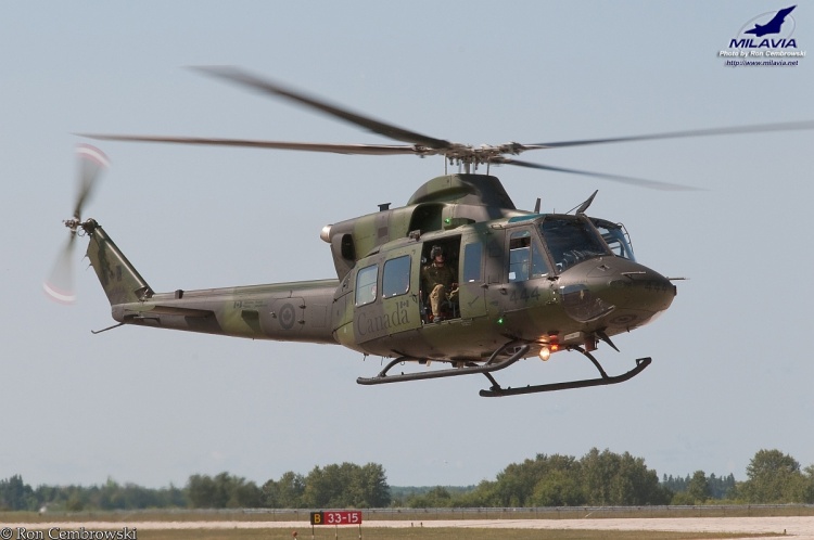 A CH-146 Griffon helicopter from 408 Squadron (CFB Edmonton, AB), photographed at Gimli Airport (CYGM), Manitoba in August 2013.