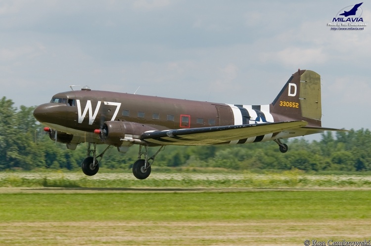 A DC-3C (N345AB) operated by the 1941 Historical Aircraft Group Museum, lifting-off the grass strip during the 2009 Geneseo Air Show (NY).