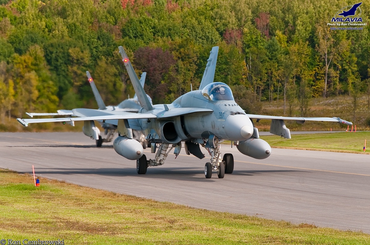 A pair of CF-188 Hornets, from 425 Tactical Fighter Squadron (CFB Bagotville), arrive at Gatineau-Ottawa Executive Airport (CYND), QC, for the 2010 Wings Over Gatineau Air Show.