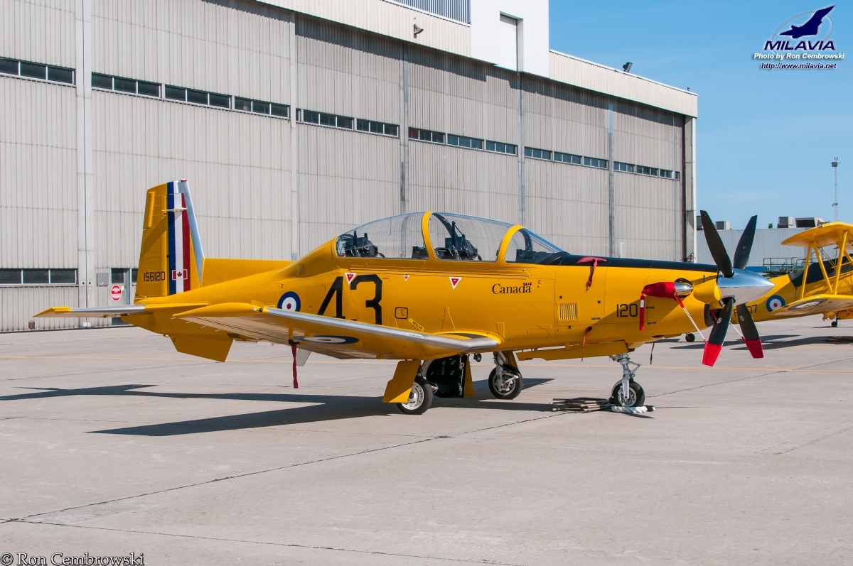CT-156 Harvard II (156120) in commemorative BCATP 'Yellow Wings' colour scheme honouring P/O Jon Gillespie Magee, Jr. Photographed at the Quinte International Air Show. 8 Wing / CFB Trenton, ON, June 2016.