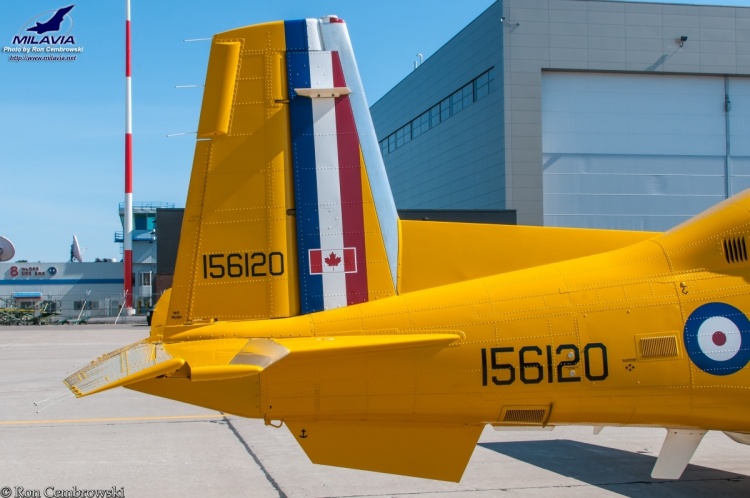 CT-156 Harvard II (156120) in commemorative BCATP 'Yellow Wings' colour scheme honouring P/O Jon Gillespie Magee, Jr. Photographed at the Quinte International Air Show. 8 Wing / CFB Trenton, ON, June 2016.