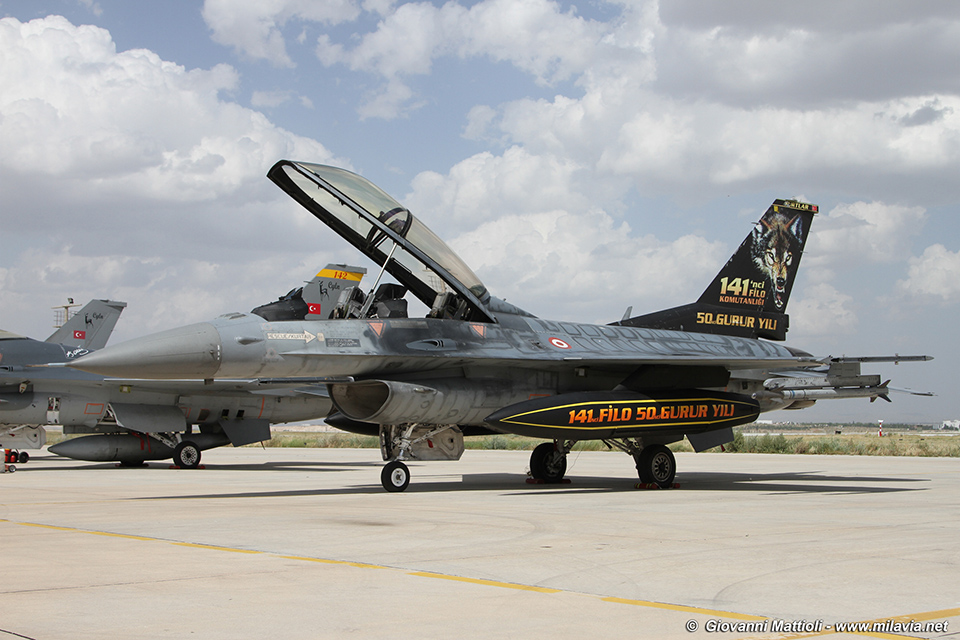 THK F-16D Block 40 with 141 Filo 50 year anniversary markings.