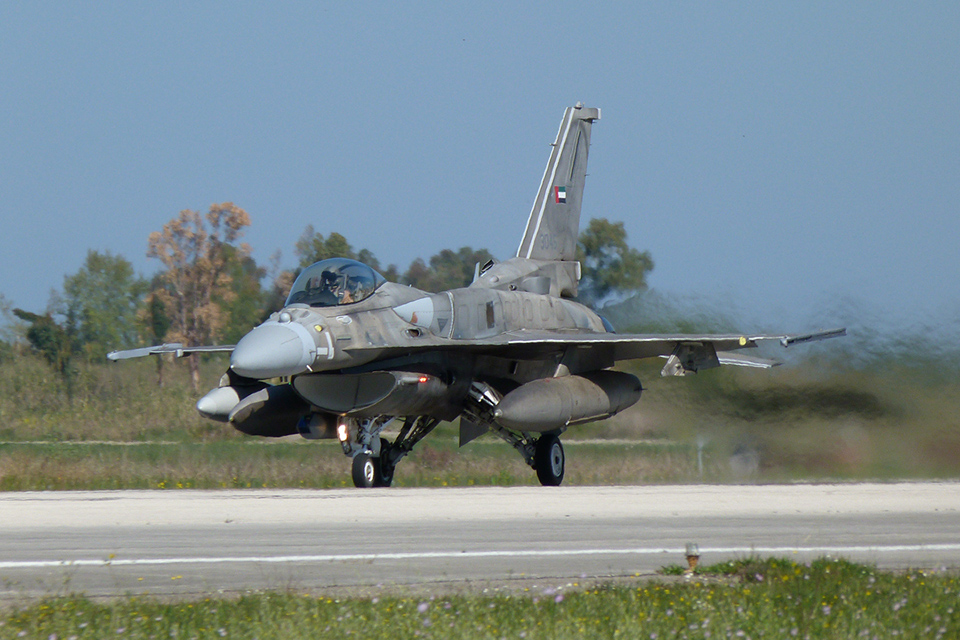 UAE Air Force F-16C Block 60 Desert Falcon 3045 on April 8, 2017. Photo courtesy of Hellenic Ministry of National Defence, via George Karavantos