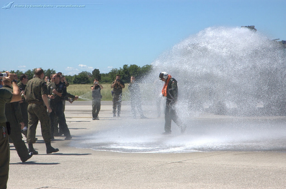 Polish Air Force pilot is welcomed back on base after reaching his 1,000th hour on the Su-22.. Photo copyright Daniele Dotto