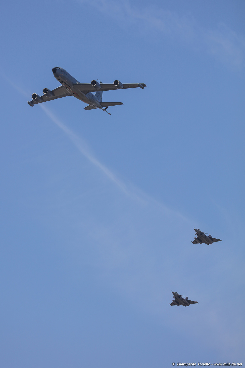 KC-135FR joined by two Rafales. The new A330 MRTT would also join the parade, flying from the Airbus facilities at Getafe, Spain.